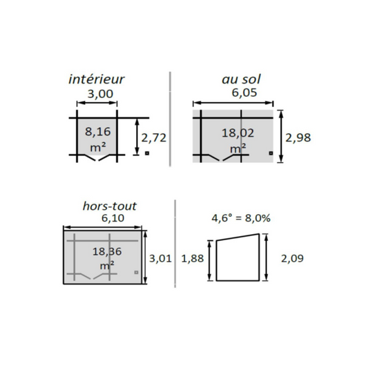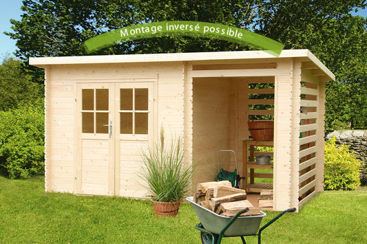 Abri de jardin bois Katy – 4,44 + 3 m² – Neuf – DESTOCKAGE